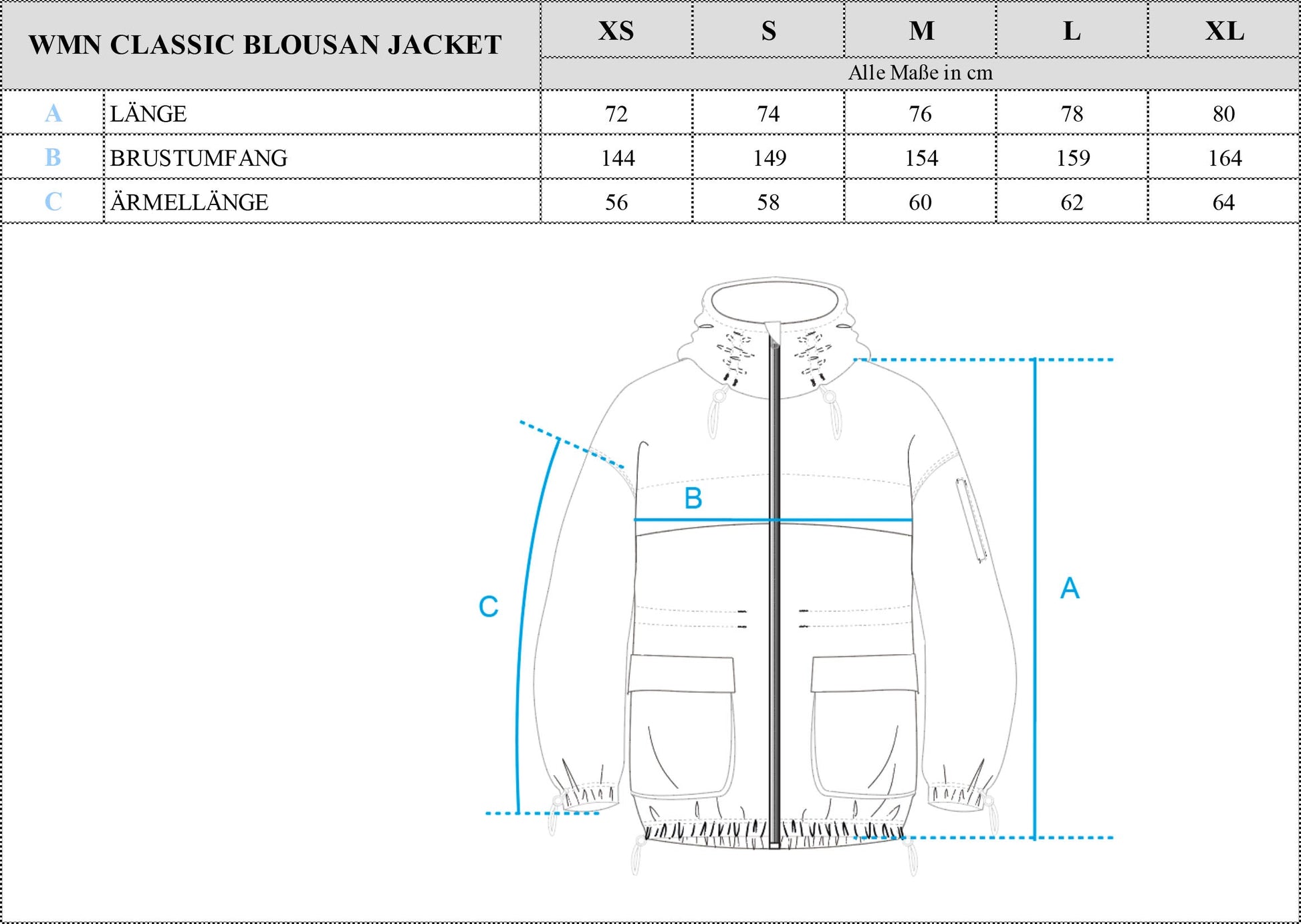 Leichte Blouson-Jacke aus unserer aktuellen WMN Summer Collection. Durch den leichten Stoff ist unsere Jacke perfekt für die kälteren Sommernächte geeignet. Sowohl an den Ärmeln als auch an der Taille lässt sich die Größe der Jacke außerdem durch Gummizüge adjustieren. Die zwei aufgesetzten Taschen bieten zudem genügend Stauraum für all deine Habseligkeiten. Wie bei all unseren Teilen findet natürlich auch unser Klingenlogo in gestickter Form seinen Platz auf der Jacke. Dieses haben wir einmal auf der linken Tasche, sowie auf dem mittleren Rücken eingestickt.