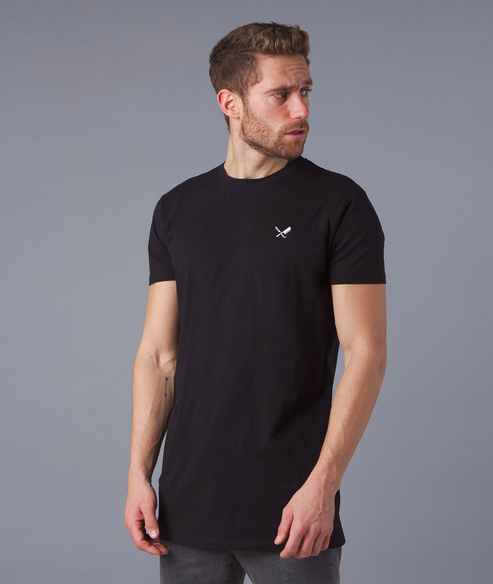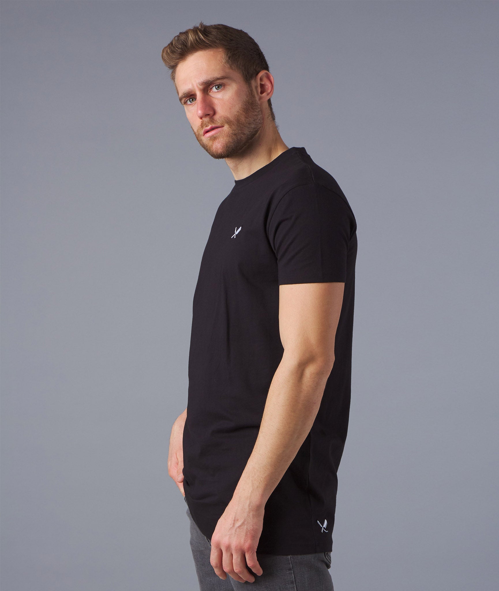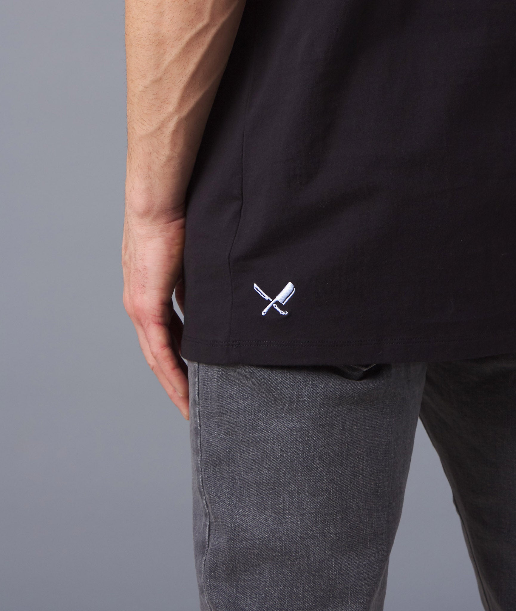 Tailliertes Long T-Shirt in neuem Fit mit klassischem distorted people Klingenlogo Stick. Das T-Shirt besteht zu 100% aus Baumwolle und hat einen engen Crewneck Kragen. Es ist bewusst etwas länger als unseren normalen Basic T-Shirts geschnitten, schließt dabei aber nicht wie unseren eigentlichen Long Tees mit einer Rundung, sondern komplett gerade ab. Wie gewohnt findet sich unser distorted people Klingenlogo auf der vorderen Brustseite und unteren Rückseite.